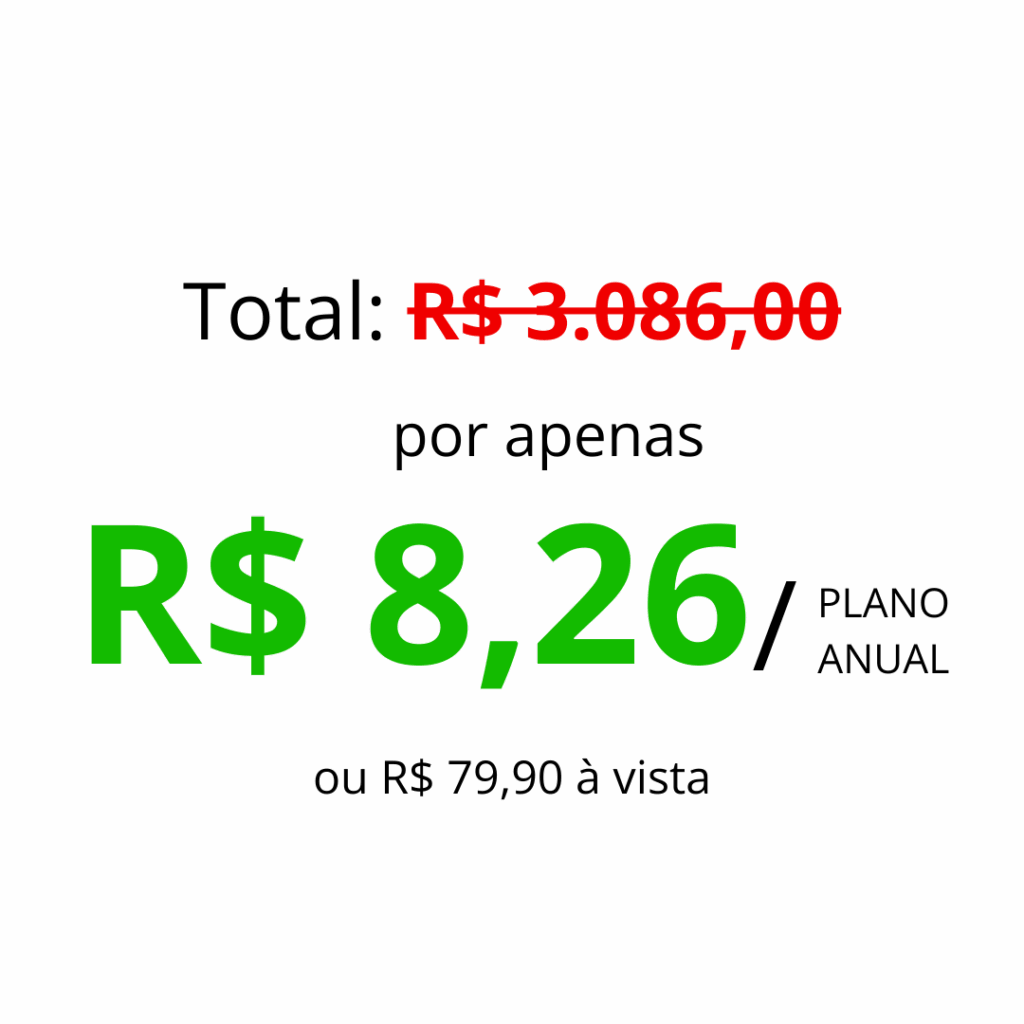 Todos esses cursos juntos valem R$ 3.086,00 mas esse não é o preço que você vai pagar